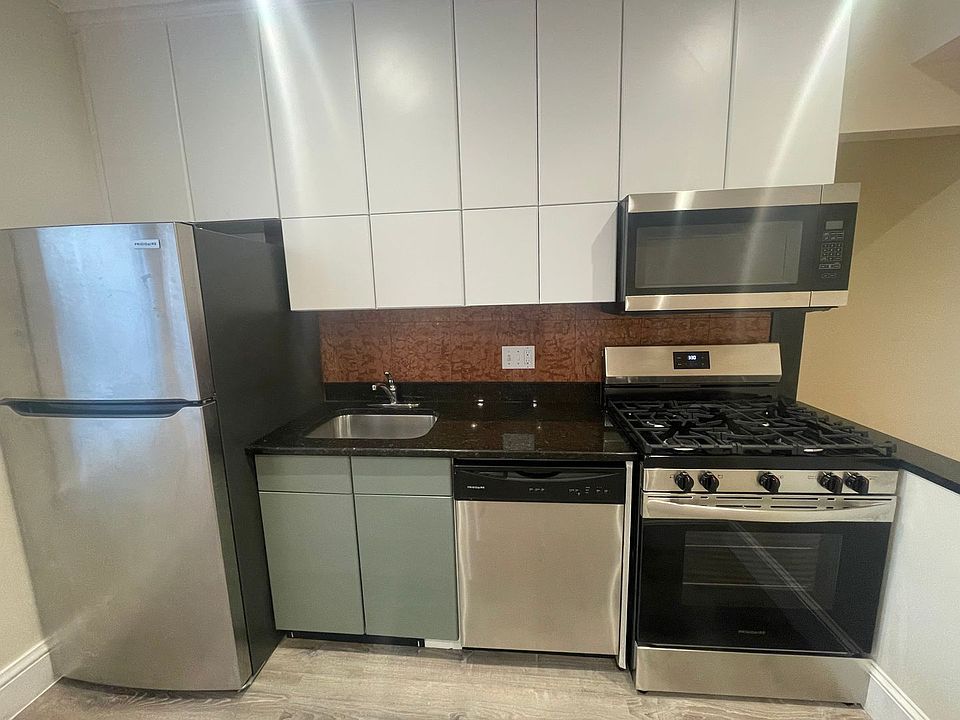 -Renovated kitchen with stainless steel appliances, dishwasher, disposal, gas stove