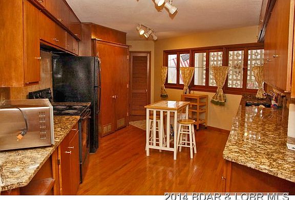 Enjoy the convenience of being close to town in this quiet little subdivision west of Camdenton. This unique custom-built light and bright home offers a breathtaking view of the lake from its two living area and all 3 bedrooms. Two large decks make a wonderful gathering place for your family and friends to gather and enjoy the view. Want a little private time? Relax and sip your morning coffee on the private patio off the spacious master bedroom. The kitchen features mahogany cabinets and has been updated with granite counter tops and wood flooring. The home has a carport that could be converted to a 2-car garage, as well as a detached single-car garage. NEW ROOF JUNE 2014.