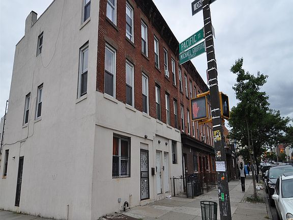 This mixed use townhouse has two apartments which are 1 bedroom & 2 bedrooms. 71 & 73 Utica Ave can be purchased as a package. Both buildings have the same setup and they mirror each other. They are sitting on the corner of Pacific St & Utica Ave only 1 block off of Atlantic Ave. The commercial space was used as a Church but and is vacant at this time. This building can be converted into condos or market rent producing townhouses. None of the tenants have leases. These homes are near the B46, B15 & B65 buses. The A & C trains stop nearby at Utica & Fulton. Local shopping is within a 5 minute walk. The property is being sold as is. No representations or warranties. Buyer must provide proof of funds before all viewings.