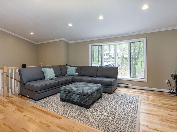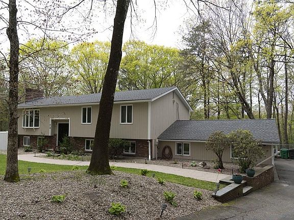 This home has it all - meticulously renovated, spacious, enormous fenced in yard, quiet neighborhood, dead end street and walkable to the T. Don't miss this! The main floor has a beautiful open Kitchen, gorgeous Dining Room, cathedral ceiling Living Room with a statement fireplace, 3 bedrooms including a Master with ensuite Bath, a Full Bath off the hallway, and gleaming hardwood floors. Downstairs is another fireplace in the large walkout Family/Game Room, a pretty Playroom with custom built-ins, a 4th Bedroom and Half Bath. The new deck stretches the length of the back of the house overlooking an the enormous fenced in yard, with woods beyond. Behind the scenes it's evident that the homeowners know how to care for a home - new roof, upgraded electrical, programmable thermostat updated Bath etc. Add central air, a large detached Garage in addition to the 2 car under, great schools, proximity to highways and a short walk to the T and this is a home that you won't want to miss!