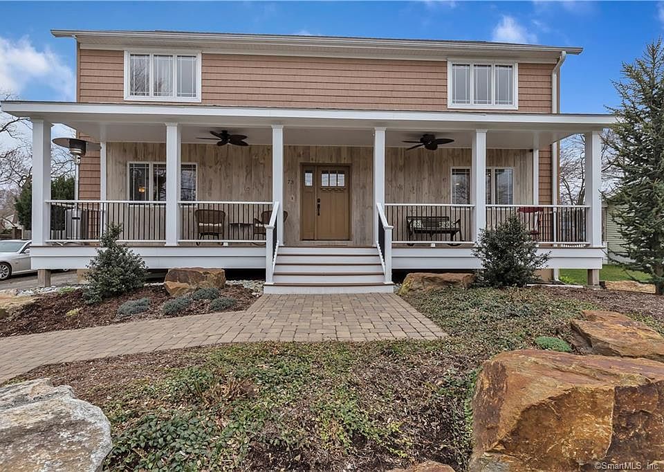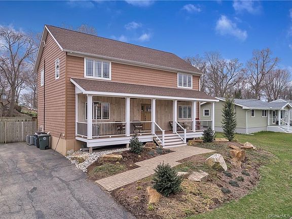 Bring Your Porch Rockers! They will be perfect for the pretty front porch that welcomes you to this beautifully renovated, move-in ready 3 bedroom 3 full bath 2,236 sq. Colonial situated on a quiet tree lined street, perfect for bike riding. The spacious open floor plan is ideal for entertaining and features a large sunny Living Room, an expansive Dining Room with sliders to deck, and fabulous kitchen with center island, granite counter tops, stainless appliances, center island, and custom backsplash, main level laundry room, and full bath with double sinks and custom vanities. Three bedrooms on the upper level include a king size Master with a spa inspired full bath showcasing a custom oversized tile shower, and walk-in closet. A beautiful finished lower level Family Room has new custom bar that just needs your finishing touches. Beautiful wood floor throughout. Sited on a large level fenced lot. A short ride to Metro North train and downtown Milford. Close to all major highways. A standout in the price range. Not to be missed!