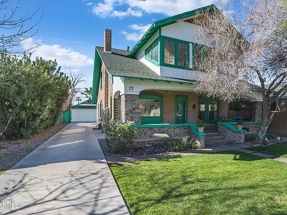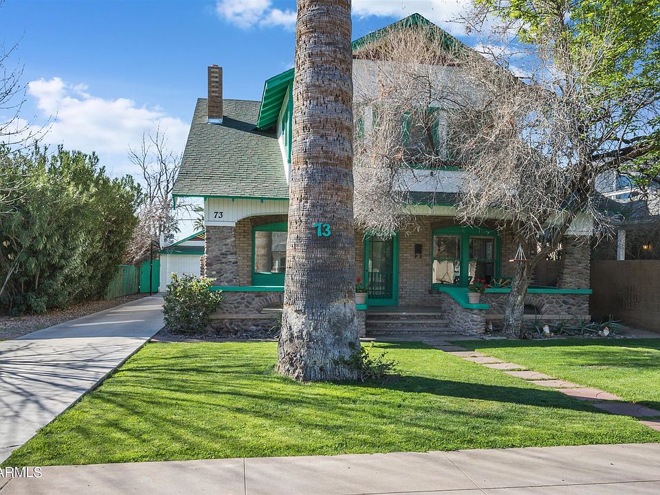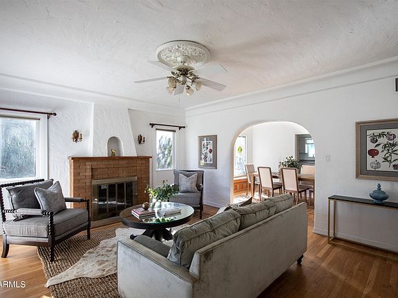 Truly a gorgeous landmark Bungalow in the Willo Historic District (built by A L Johnson in 1929- see historic data in document tab). Current owners purchased this home 24 years ago. At that time the upstairs had been stripped to the studs. They remodeled the entire dwelling, added a pool, and spa. The design elements were retained, including the river rock facing on the porch, fireplace and the decorative trim on the gable. This home combines the timeless appeal of history with the modern amenities of a kitchen with stainless steel appliances and an upstairs master suite with a spacious bath & 2 closets. There is a 664 sf basement included in total sf, plus a den, bonus room & detached 2 car garage. Walking distance to light rail line on Central Avenue & close to all downtown venues.
