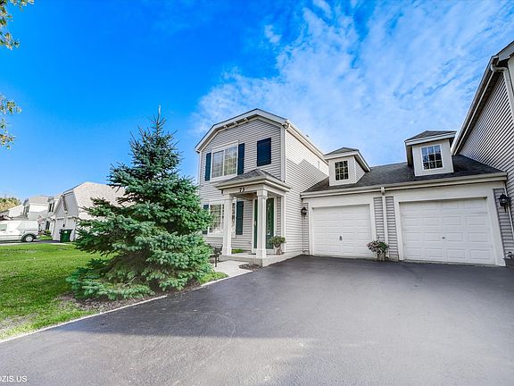 Welcome to this beautifully maintained 3-bedroom, 2.5-bath duplex in the highly sought-after Madrona Village community of Round Lake! This bright and inviting home features an open-concept layout with extra-large windows that fill the space with natural light. The main floor offers a spacious living and dining area, a convenient half bath, and brand-new hardwood laminate flooring throughout. Upstairs, you'll find three generous bedrooms, including a primary suite with a walk-in closet and direct access to a full bath. The two additional bedrooms share a second full bathroom, and the second-floor laundry adds everyday convenience. Step outside to a large backyard with a private patio-perfect for relaxing or entertaining. Additional highlights include a 2-car tandem garage with a driveway, new carpeting, and a newer roof. Ideally located just steps from parks, walking trails, and shopping, and within the Grayslake School District. Move-in ready and waiting for you to call it home!