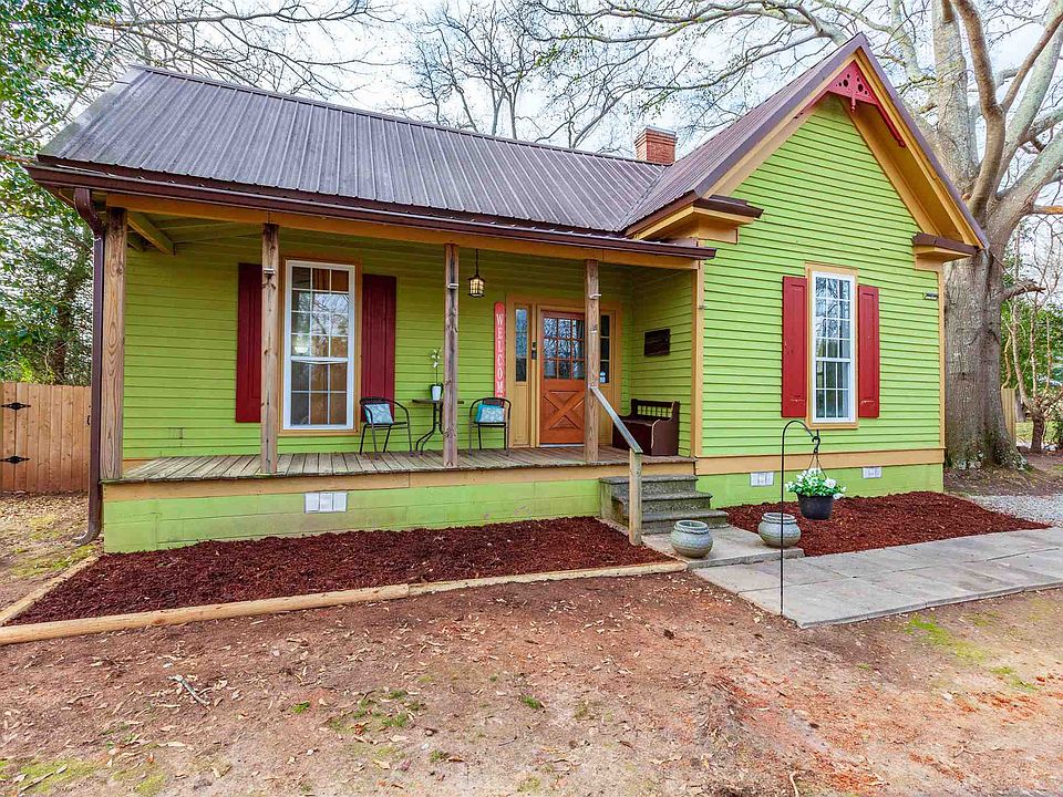 Charming 2BR/2BA cottage in a great location! 4 blocks from the Downtown Newnan Square - only a few minutes walk to restaurants and shops! This lot offers large mature oak trees, ample parking, utility shed, and a large fenced in backyard with seating and grill area. Feel right at home from the moment you walk up the steps to the covered front porch. This home maintains its historic charm with the convenience of modern updates throughout - 10' ceilings, new flooring, new light fixtures/fans, double-pane windows, granite countertops, stainless steel appliances, newer HVAC & water heater - with even more details throughout to make you feel cozy and at home. Large bedrooms with decorative fireplaces and tall windows, two updated full bathrooms, large separate dining room, separate laundry/mudroom area with exterior door to backyard. Great opportunity and convenience - this property is move-in ready and waiting for the next owner to call it "home"!