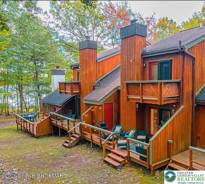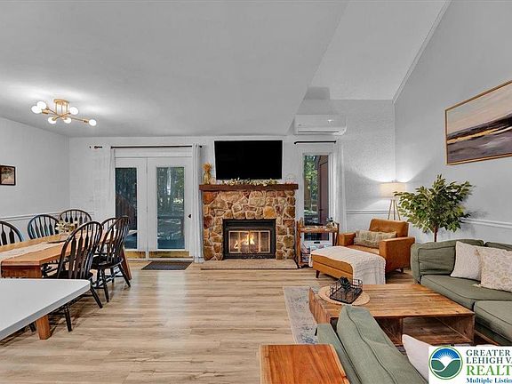 ? Renovated Townhome with Lake Views. This beautifully updated 3-bedroom, 2-bath townhome is truly TURNKEY and ready to enjoy. Blue Heron Townhomes are ideally located close to Big Boulder Ski Area, making it the perfect spot for family fun or a proven Short-Term Rental investment. Fully renovated from top to bottom, this home features a brand-new mini-split A/C and heating system, a modern kitchen with all new appliances, renovated bathrooms, and new flooring, carpeting, lighting, and furniture throughout. Freshly painted inside and out, with renovated decking and a new stain (2025), every detail has been thoughtfully upgraded. The open-concept living area is anchored by a striking stone wood-burning fireplace, while the expansive back deck and private primary bedroom balcony both offer peaceful lake views. Whether used as a full-time residence, weekend retreat, or investment property, this home checks every box. It consistently delivers $50K+ in annual gross rental income through Airbnb and direct bookings, ranking in the Top 5% of homes on Airbnb and among the top-performing rentals in the community. Optional Boulder Lake Club Membership offers access to a sandy beach, pool, boating, tennis, and clubhouse amenities. Just minutes from Big Boulder and Jack Frost Ski Areas, golf, restaurants, and year-round Pocono attractions.