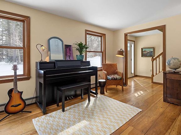 Sought after Mad River Valley location close to Mad River Glen, Sugarbush and town, this 2,200 square foot, 4 bedroom, 2.5 bath expanded cedar cape with an attached garage sits on a 4.6 acre, level lot bordered by towering white pines. The house features a great room with a cozy Jotul woodstove, a living room with a brick fireplace, a first floor primary bedroom with ensuite bathroom, three bedrooms up stairs with a Jack and Jill bathroom, a large pantry, a clean and dry basement with a second woodstove that serves as a back-up heat source, and a large storage area above the garage. Exterior highlights include a deck with a fire pit close by, a pole barn for storage, a woodshed, a chicken coop and enclosed run, perennial gardens and blueberry bushes. Work at home with a fiber internet connection, or easily commute to Montpelier or Waterbury and come home to play. The Burnt Rock trailhead and the Boyce Town Forest are moments away, and gravel roads and trails abound. Showings beginning Friday, March 3rd.