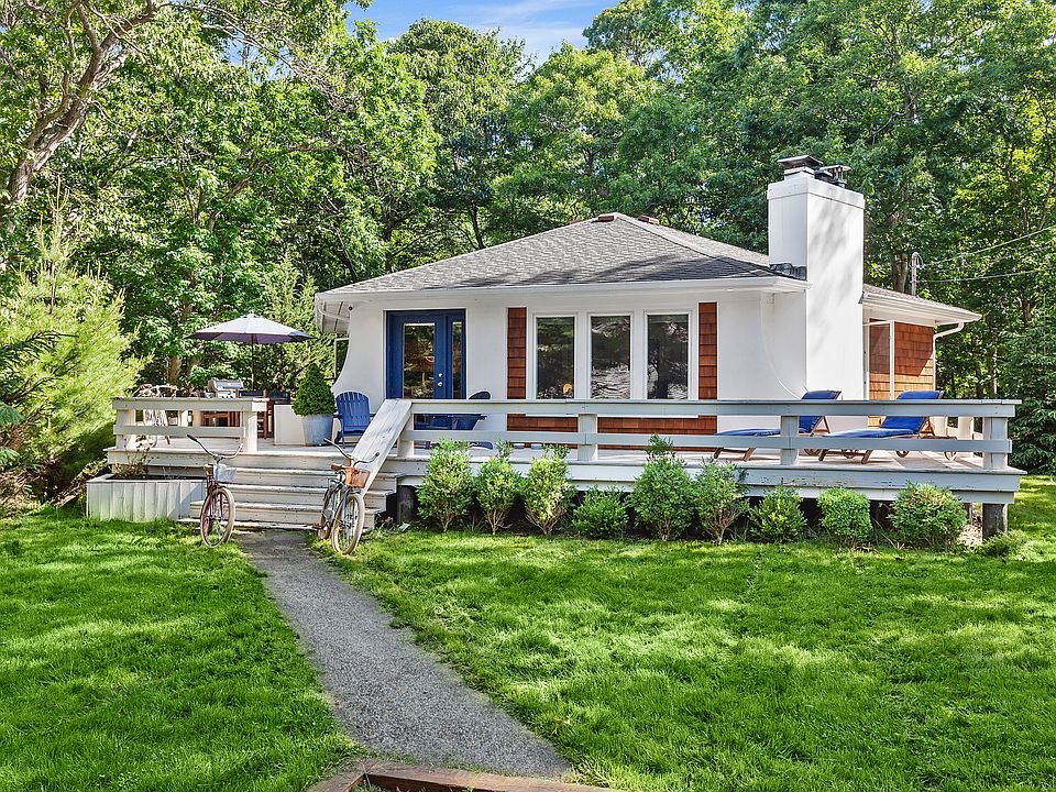 Rental Registration #: 23-660 This one-of-a-kind hexagonal-shaped beach bungalow with a sparkling new pool is the ultimate getaway. An open floor plan and beamed ceilings on the casual interior living space is seamless with the wraparound deck and lush outdoors. The main level has a primary and one guest bedroom along with the main bath. The finished walk-out lower level boasts a TV room, guest bedroom, guest bathroom, and laundry. A brand new pool in the expansive and private backyard adjacent to a nature preserve is beautiful. Enjoy guest privileges and magnificent sunsets at Clearwater Beach in East Hampton.