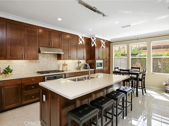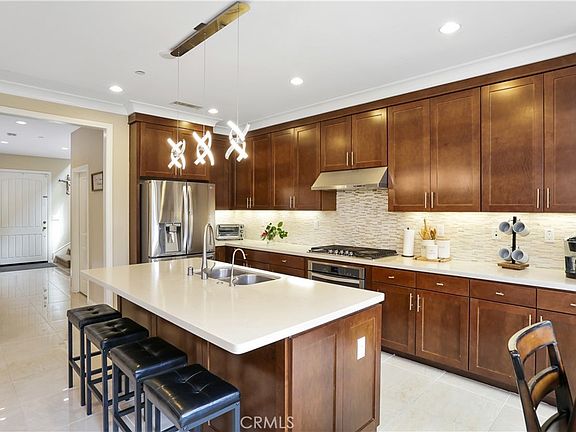 Welcome to this beautifully and highly updated home located in the picturesque community of Cypress Village. This stunning single family detached home boasts 3 bedrooms and 2.5 updated bathrooms. Built in 2016 with an extensive list of builder upgrades. The home features energy efficient recessed lighting, cooling and heating. As you approach the home, you'll be mesmerized by the beautifully inviting Mediterranean architecture. Upon entering the home, your breath will be taken away by the polished Porcelain stone flooring and the endless list of upgrades and improvements that truly make this home stand out among the rest. The vast list of upgrades includes a tastefully updated gourmet kitchen with custom soft close drawers, cabinets and pull-out shelving, along with upgraded beige Quartz counters and island top resting below the marvelous custom Pendant lighting . Stainless steel LG refrigerator and chef inspired Kitchen Aid appliances, along with a 5 burner built-in range with hood and beautifully designed natural stone back-splash give the over-sized open kitchen its finishing touches. Dual pane windows and sliders throughout the home, paired with Roman shades and dimmer features. The home also features a tank-less water heater and a convenient upstairs laundry room which includes oversize Samsung side-by-side washer and dryer with stands and custom built linen cabinets. Home security includes motion activated LED lighting front and back. Enjoy movie nights in your living room with the built-in entertainment system including Martin Logan Motion series CI with a 6.5" mid-range, folding motion tweeters and two-way speakers. Elegantly designed Roman shades and shutters throughout the home provide ample natural light, along with shading when needed. The highly updated garage includes double granite epoxy flooring, expansive custom cabinetry, workstation and a track wall. Enjoy sitting in the masterfully updated entertainer's wrap-around backyard under a shaded trellis with string lighting, Belgard porcelain matte stone flooring, peaceful heavy cast stone fountain with water features, along with motion lights and spotted lights for plants. A large gated storage/utility area within the side yard provides privacy and ample room for a dog-run, shed or workspace. The list of features goes on and on. This is truly one of the most highly updated luxury smart homes on the market. Don't miss this opportunity.
