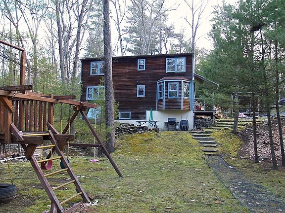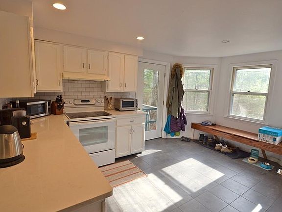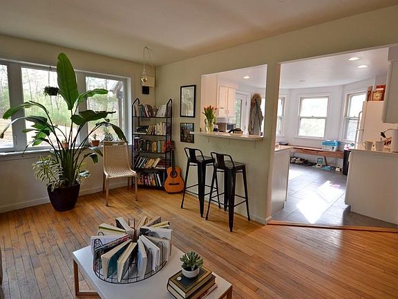 Just 10 minutes from Amherst center, you'll find this bright cape style home in a sunny cul de sac among majestic trees. Extensively renovated, high quality and tasteful finish materials and details appear throughout. An open main floor consisting of kitchen, dining room, full bath, and large living area. A wall of windows on the south side floods the dining room with sun. The living area glows with afternoon light. Uniquely constructed with 7.5" exterior walls providing a true thermal break, the economical pellet stove heats simply and comfortably. Upstairs you'll find a large master, two additional bedrooms, and a full bath with a large tiled shower. An outbuilding in the back of the property--with a covered porch, electricity, phone, and data connections--makes a lovely studio or home office. Abutting 135 conservation acres and trails, and a short stroll to Atkins Reservoir, this home has both privacy and proximity, at a price you can't beat.