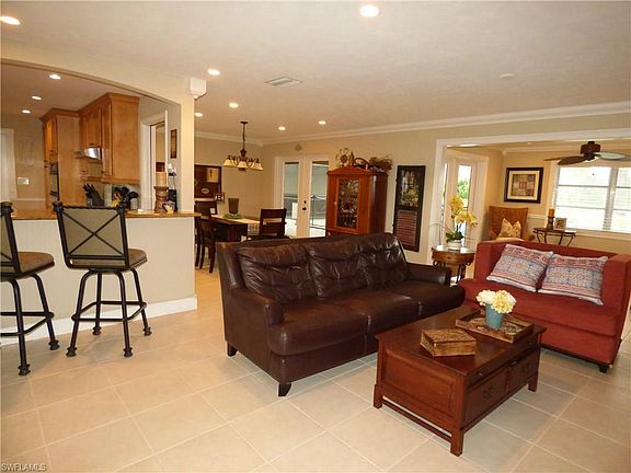Home Sweet Home! Darling 3 bedroom plus den, 3 bath home in the sough-after community of Willoughby Acres. Crown molding & ceramic tile flooring throughout. The kitchen has an abundance of wood cabinets, granite countertops and stainless steel appliances and a breakfast bar. New refrigerator and newer dishwasher. The private fenced back yard with its lush, mature tropical landscaping definitely has that "Wow" factor and is perfect for entertaining with the in-ground pool, the screened-in outdoor bar, and the built-in grill on the open lanai! The roof and HVAC were replaced in 2014. The community has no HOA dues and is in an excellent school district. Located just minutes to the beautiful beaches of Naples and close to shopping, dining and entertainment. Must see!