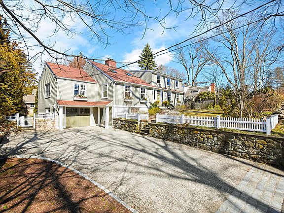 Stunning home in meticulous condition. Gracious entry; LR w/fpl, vaulted ceiling w/skylt, built-ins & new HW flrs. DR w/dry bar & wine cooler. Gourmet kitchen w/island & DA w/skylts to step-down FR w/skylts, built-in TV (included, sliders to patio w/retractable awning & private, fenced yard. 3 BRs on 1st fl w/2 ensuite baths plus hall bath. 2nd Fl has lavish master w/skylts, great closets & luxurious bath w/rad- heat tile fl, free-standing tub & large shower. 5th BR/Ofc & loft library overlooking LR. LL mudrm/laundry w/access to garage. Wonderful imprvmts: Hardie Board Siding, roof, furnace, HW heater, custom blinds. Come see this well-loved home. Flex flr pl suits at-home offices. Charming waterfront village of Rowayton w/beaches, boating, tennis, paddle, library, community events & more
