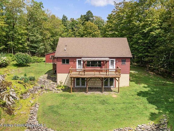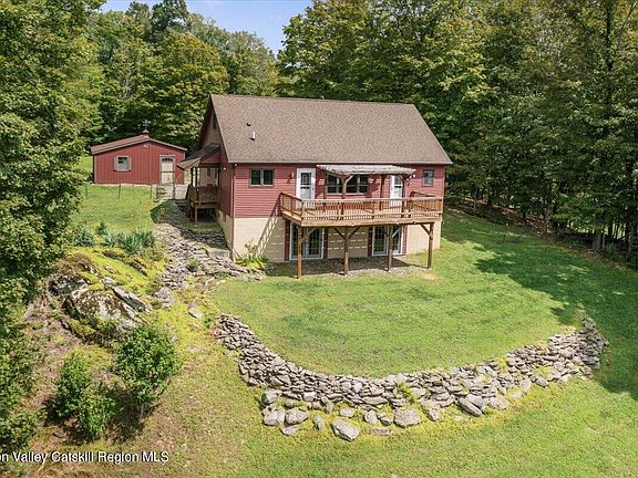 Tucked away in a serene, private setting, this charming Cape-style home in picturesque Clinton Corners offers a peaceful escape with easy access to the lively towns of Stanfordville, Rhinebeck, and Millbrook. Set back from the road, a long driveway leads up to a hilltop where the home is surrounded by mature trees and the grounds are wide open in the back, offering stunning views of lush greenery and distant mountain tops. The interior is bathed in natural light, thanks to numerous windows and glass doors that invite the outdoors in. The home features two cozy bedrooms, one with a walk-in closet, and a bathroom accessible from two sides for added convenience. A dedicated dining room and a spacious eat-in kitchen are perfect for casual meals and entertaining. Step outside to a large back deck where you can enjoy the tranquil surroundings, whether it's morning coffee or evening sunsets. This property comes with a full walkout basement and an attic accessible via a straight staircase, providing plenty of room for expansion. The attic can accommodate two additional bedrooms, and the basement offers versatile space for further customization. A detached open garage with workspace provides additional storage and even more possibilities. Set on just over 2 acres, this home presents a unique opportunity to craft your dream retreat in a setting that feels like your own private oasis, yet is just moments from all that the Hudson Valley has to offer. Bring your vision to transform this diamond in the rough to a true gem!