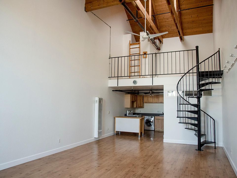 Sleek and contemporary modern loft for rent close to First Fridays, Lake Merritt, and MacArthur BART. This gorgeous and spacious loft is just over a mile from the heart of Lake Merritt. Situated close to all the beautiful shops and amenities that Emeryville, Berkeley, and Oakland offer. Walking distance to everywhere, 88 walk score and if you ride a bike you're in for a treat, 99 bicycle score with new bike lane additions put in within a year. Are you tired of renting from big property management companies? Here's your chance to rent directly from the owner. I also have excellent references from my former tenants. Features: -1,100 sq ft. of living space with one loft-style bedroom and one bathroom. -24 ft soaring ceiling height in the living room with two large skylights for lots of natural light. The loft is accessed via a beautiful spiral staircase with a walk-in closet. -Well insulated with dual paned windows and tranquil/private living space. -In-unit laundry (European style washer/dryer combo) -Recently updated kitchen appliances and flooring. -Large commercial washers also available. -Gardening area. -Secured mailroom for packages. -Lots of storage. The community's neighbors are a combination of artists, bakers, architects, interior designers, clothing makers, and print shop experts: respectful adults with lots of peace and quiet. -Close to Whole Foods, Sprouts, Yoga Studios along Telegraph, Lake Merritt, Lululemon, Brenda's French Soul Food, Cholita Linda, Drake's Dealership, Firebrand Coffee, Blue Bottle Coffee, MUA, Fox Theater, Paramount, & 19th BART. Outside features: -Fully gated community with a common area in front to sip coffee and sit at the table under an umbrella. The loft is set back away from the street area, so it is extremely quiet, with no noise from traffic. -Privacy fencing all around -Dedicated parking space Here are the logistics: - Rent is $2,379 per month for up to two people. Garbage and water service included. Tenants pay PGE directly for gas and electricity - No smoking - A dog is okay - Equal opportunity housing and LGBT+ friendly - No application fee, but applicants are subject to a credit check - 1 year or longer term lease and verifiable income - Available June 22nd - If interested, please write to me and tell me a little about yourself - Feel free to text/call me, I'm Sam, the owner Please drive the area before scheduling a viewing. 30th and West St. No smoking is allowed 1-year agreement Parking is included A dog is okay - must be well-behaved and accounted for if working outside of the home