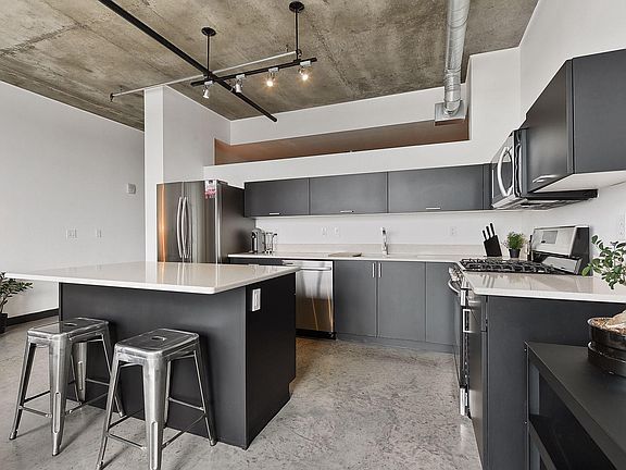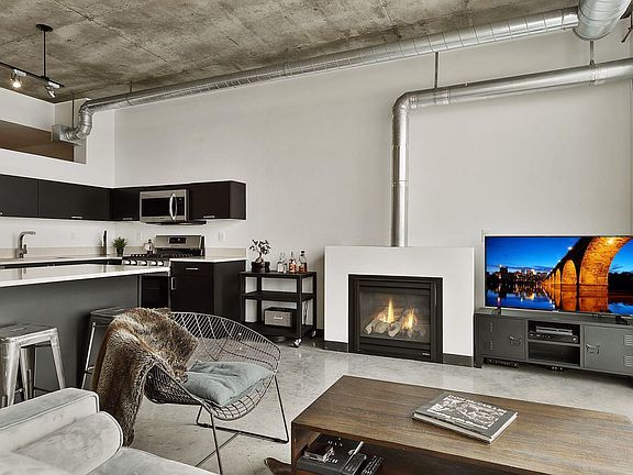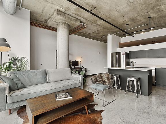 Modern industrial loft with everything included but electric in the heart of the North Loop. Throughout the unit you'll find amazing details: polished concrete floors, new fixtures and hardware, tons of in-unit closets and storage, new appliances, gas fireplace, large island with space for barstools, floor to ceiling windows, exposed ductwork and black iron pipe, natural gas hook-up for grilling on the balcony, and more. 730 Lofts residents enjoy secure access; onsite management; top floor fitness center, community room and rooftop patio; all steps from the signature shops and nightlife of the neighborhood. Included with rent: 1 indoor heated parking stall, 1 climate controlled storage unit, water/sewer/trash, gas, heat, a/c, basic cable & internet.
