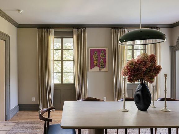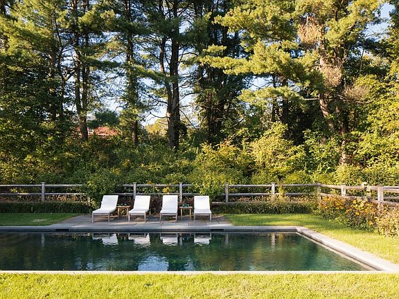 Just minutes to the village of Rhinebeck but a world away, this proper estate sits on 25 bucolic acres of rolling wildflower meadows. The stately c1890 farmhouse looks out over two ponds and a tennis court. A guest house, pool and fenced vegetable garden are tucked neatly the side. The farmhouse has remained true-to-form over its 130+ year history, with its ornamented facade and restored shutters. Enter into the mudroom, with built in cabinetry and charming brick-laid floor, and continue into the stunning kitchen. Recently remodeled with classic marble countertops, beautifully creamy cabinetry with dark wood accents, and walls of windows around the eat-in table. Off the kitchen, you'll find a built in window seat with Workstead lighting, laundry and a half bath with a custom carved soapstone sink and brass hardware. The dining and living rooms are both situated off the front hall and each has a woodburning fireplace. The expansive primary suite is on the first floor, with custom closets and a large bay window overlooking the meadows. A primary bath features an amazing Calcutta Viola marble shower, a vintage double vanity with wall-hung brass hardware and a soaking tub. Upstairs, you'll find four more well-appointed and large bedrooms and two full baths with Waterworks hardware, handmade tile and lighting from Apparatus Studio. On a walk around the grounds you'll find large koi stocked in the ponds, perennial flower gardens, a new tennis court and a new heated gunite pool. The pool house has a full kitchen, full bath and a fireplace. The expansive property is surrounded by other large parcels, and includes a separate, developable lot across the street. 730 Ackert Hook is a proper estate just minutes to the village, 2h to NYC and under 10m to Amtrak.
