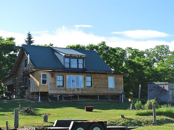 This rustic log home, situated on over 40 acres of meadows and woods, overlooks the Green Mountains of Vermont. With stunning views, 10 acres of tillable land, pastures and fencing for horses, a shed, chicken coop and plenty of room for a garden this property is the ideal Gentleman's farm. Raise your own vegetables, flowers and livestock on this incredible property. While this home has that "country" feel, it is just a few miles to the schools, stores and restaurants. The house has a cozy, open floor plan with a wood stove in the kitchen, large living room, main floor bedroom, bathroom and a large loft that serves as the second bedroom.