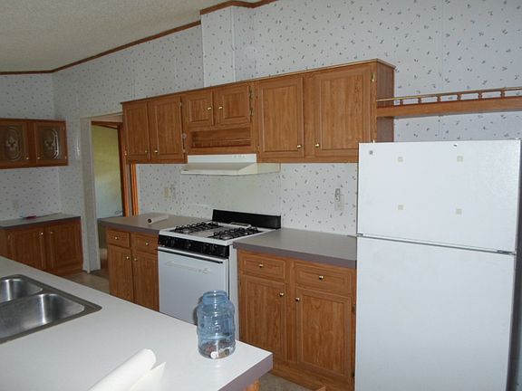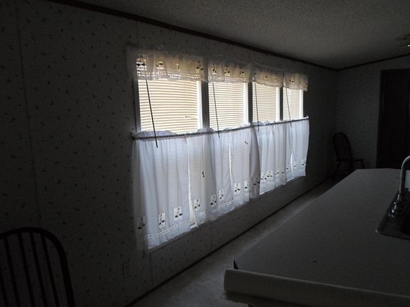 The Mobile home is a 2002 model. It has a large living room / Dinning room with ceiling fan. A morning room with 4 good size windows that allow loads of natural light to enter the Kitchen that has a island that houses a dishwasher and a double stainless steal sink and refrigerator .It also has ampule storage space and a electric outlet located on the island. A good size pantry with lots of space. A utility room with ampule storage and is where the back door is located. Master bedroom with walk in closet that has access to the master bath. The master bathroom has a garden tub with sky light above it , double sinks, separate shower with frosted glass door. 2 more bedrooms that are good size with good size closets. The second full size bathroom has a tub shower comb with single sink and toilet with sky light.