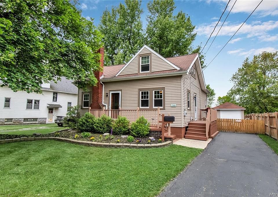Turn the key & enjoy! This beautiful cape in Cheektowaga has everything you need to immediately feel at home! Large front porch leads you through original Lead Glass door complimenting the charm of this home! Sunken living room adorned with recessed lighting, gas fire place & large window seatingw/ storage is perfect for all those cozy nights in! Spacious eat-in kitchen w/ sliding doors leading you out to fully fenced yard - past fence there is an additional 400 yards of space for you to enjoy. Family room converted to entertaining space with large dry-bar, original WB fireplace & original hardwoods throughout into the dining room - both spaces loaded with windows casting tons of natural light! 1 bedroom on 1st fl, 2 on 2nd fl & completely private full floor master w/ built-in dressers