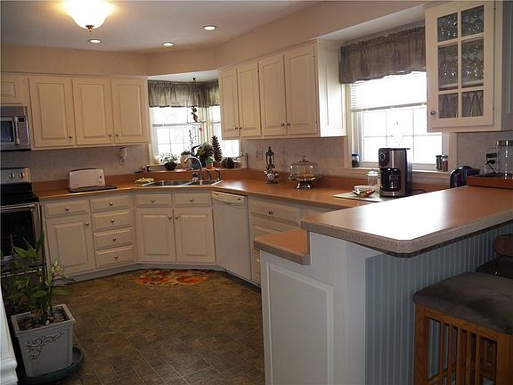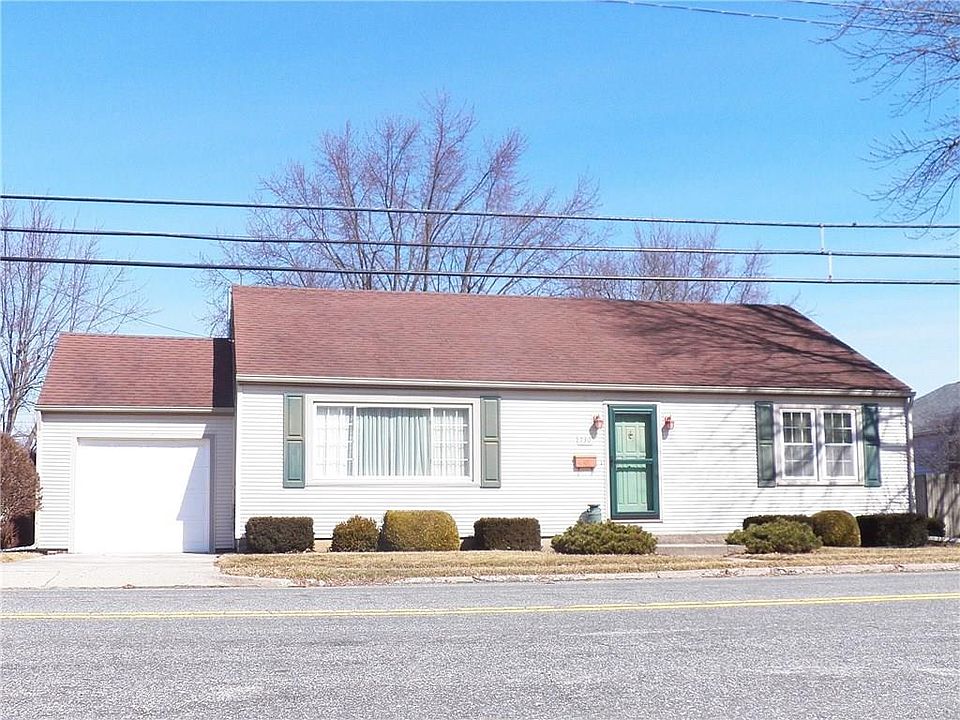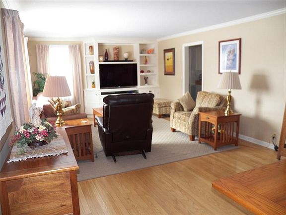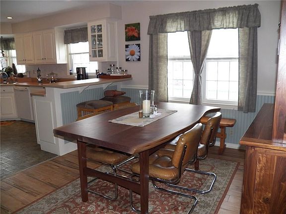 Attractive and skillful updates throughout this 1-story home with beautifully expanded and designed kitchen featuring painted cabinetry with bar and stainless kitchen appliances including microwave. Living room with wood flooring and built-in entertainment shelving. Tastefully appointed 2 bedrooms and updated bath. storage up and down to the unfinished basement. 1-car attached garage, well landscaped yard & patio, 24X24 detached garage/workshop with electric & propane heat.