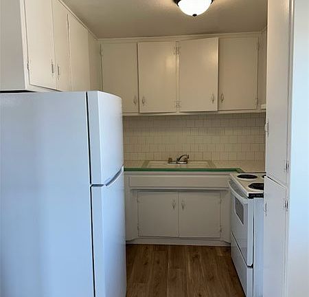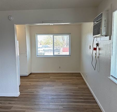 2 Bedroom, 1 Bath Upstairs Unit. This spacious upstairs unit offers approximately 800 square feet of comfortable living space. Kitchen with tile countertops, refrigerator, and electric range. Bathroom with shower/tub combo. Gas wall heater and wall A/C unit. Laminate flooring throughout. On-site parking available on a first-come, first-served basis. Water, sewer, and garbage included in rent. Renters insurance required Application: Click here to apply Video Tour: Watch the tour