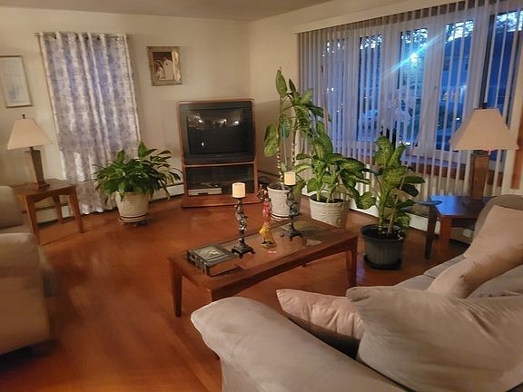 Custom Built Split level with finished lower level ideal in-laws or extended family, has full bath with laundry area, laundry area, eat in kitchen family room and one bedroom. The main level has 3 bedrooms, bathroom, large eat in kitchen, dining room with slider to deck with hew flooring. Beautiful new gleaming oak floors and staircase. Separate zone heat, vinyl windows, garage under. Large fenced in yard with many fruit trees, flowering bushes and garden area. Very well maintained in and out.