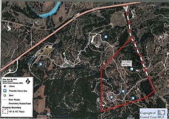 Beautiful gated 101 acre tract over looking the Middle Creek Valley. Tremendous views, abundance of wildlife, fabulous oaks with scenic ranch roads meandering through the ranch. This beautiful ranch has prime game habitat and is loaded with deer, turkey and birds. The ranch is currently under Ag. Tax Evaluation, listed as Game Management. Plenty of building sites to choose from. Deed Restrictions.