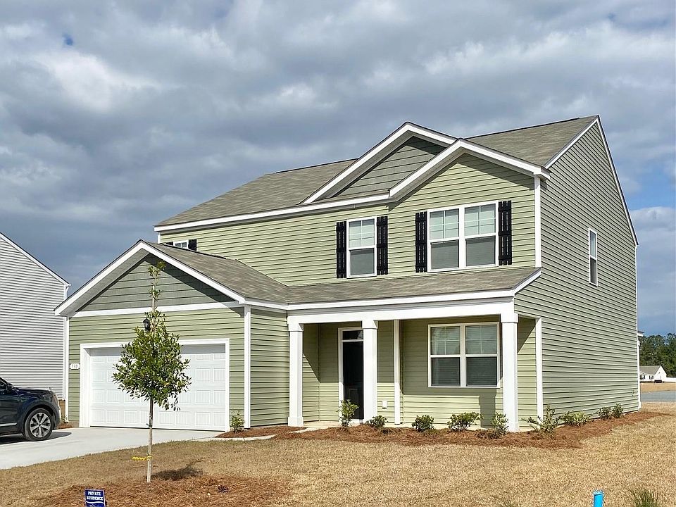 The Elle floor plan offers plenty of space with room to grow. Featuring a first floor primary bedroom suite with generous bath, walk-in closet, and linen closet. The kitchen boasts a large island with breakfast bar and opens to the casual dining area and spacious living room. Granite countertops, 36" painted cabinetry, stainless appliances, and beautiful laminate wood flooring throughout the main living areas all included! There is also a wonderful flex space on the main level that could be a dedicated home office or a formal dining room. Sliding glass doors off the dining area leads to the rear covered porch for added outdoor living space. Upstairs offers large secondary bedrooms plus an expansive secondary living area. It gets better- this is America's Smart Home! Control the thermostat, front door light and lock, and video doorbell from your smartphone or with voice commands to Alexa.   *Photos are of a similar Elle home.  (Home and community information, including pricing, included features, terms, availability and amenities, are subject to change prior to sale at any time without notice or obligation. Square footages are approximate. Pictures, photographs, colors, features, and sizes are for illustration purposes only and will vary from the homes as built. Equal housing opportunity builder.)