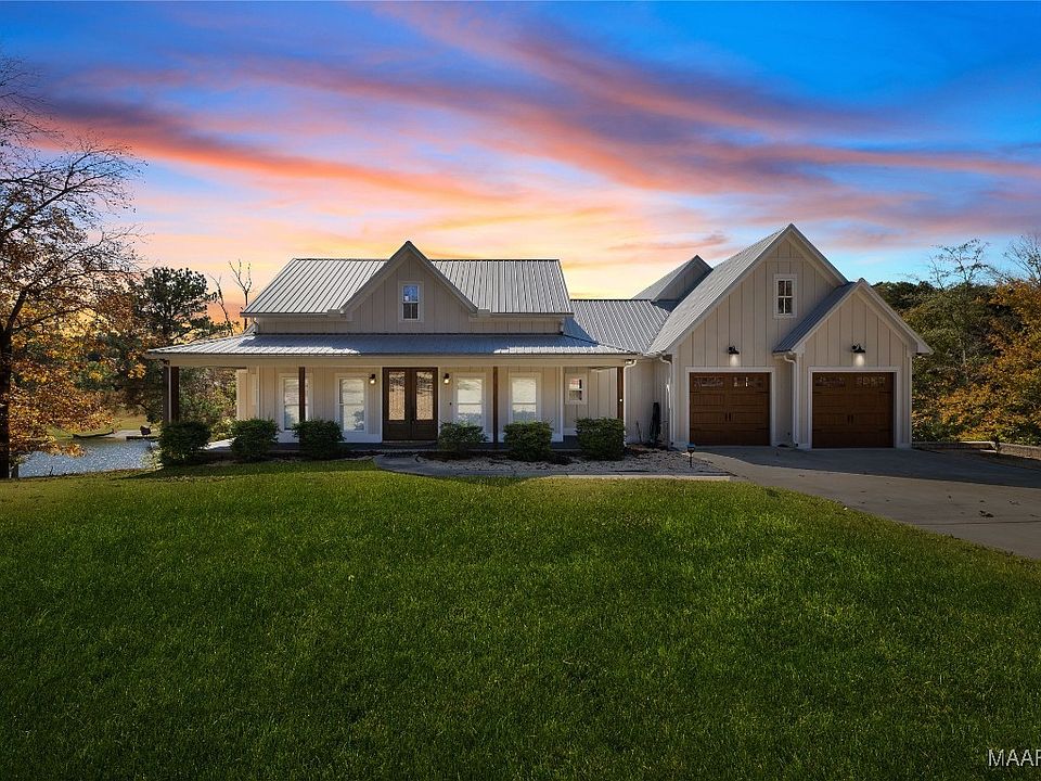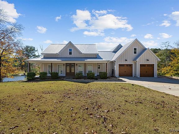 STUNNING CUSTOM LAKEFRONT Modern Farmhouse-style home sits on Lot 48 of Highlands of Lay. With 2,810 sq ft of custom-designed living space, this home combines modern comfort, elegant finishes, and serene lakefront living. Step inside to an open-concept floor plan featuring luxury vinyl plank, stone, and concrete floors, and a bright, airy flow throughout. The gourmet kitchen showcases granite and quartz countertops, custom cabinetry with soft-close doors, stainless steel appliances including a French-door refrigerator and apron-style farmhouse sink—all tied together with sleek black hardware for a timeless, upscale look. The split-bedroom layout provides privacy for the spacious master suite, which boasts a large walk-in closet, dual vanities with granite counters, a double-sized marble shower with glass enclosure and a classic claw-foot soaking tub, and a private commode room. Single level living, plus an EXTRA-LARGE daylight basement, with safe room and full bath.