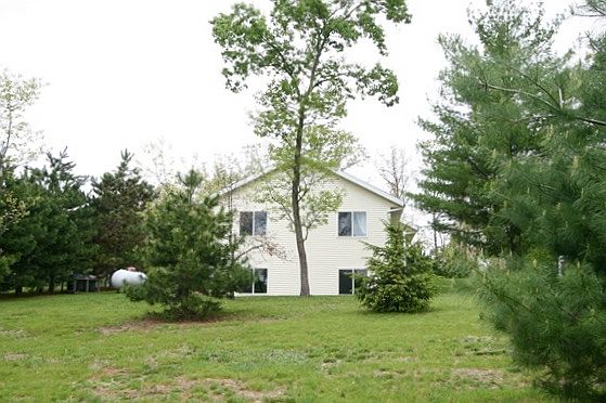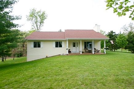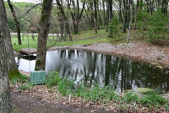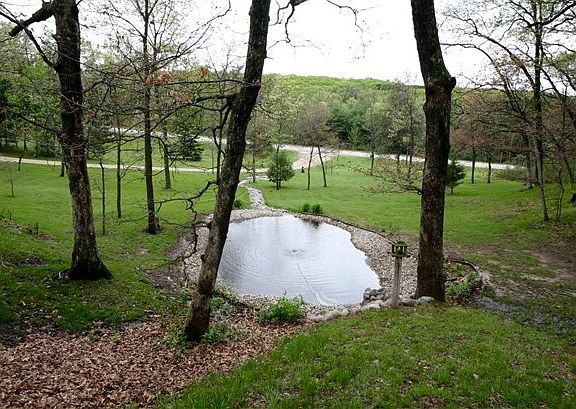 Stunning, park-like setting with 2 spring-fed ponds, oak, maple, black walnut and pine trees on 5 acres with the home nestled atop a ridge. Land features include a winding drive, 10' rock sided campfire pit, a 10'x35' concrete RV pad with water, elec and sewer, 3 sheds and large enclosed raised bed garden. Home features dramatic great room with cathedral ceiling, large windows, WB fireplace and an open kitchen with 8 foot island. 3 Bedrooms on main level and a large finished family room in LL. Great storage