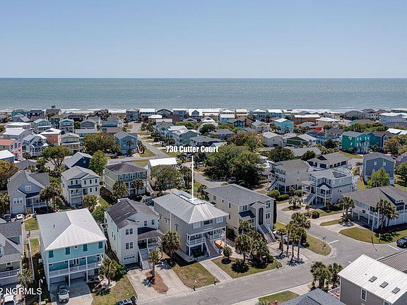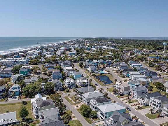 730 Cutter Ct. offers an impressive 4,379 sq. feet with 5 bedrooms and 4 full baths! An impressive kitchen with tons of counter space, propane cooktop, a breakfast nook and a formal dining area. For those working from home, there is a large home office (could be 6th bedroom). The ground level includes a spacious bonus room and a full bedroom/bath. This is a perfect for guests or family members who want their own space. Lots of features inside including custom trim work, built-in shelving, large laundry room with wet sink, propane fireplace, central vac, water softener system and more. There is a 3-stop elevator which accesses each floor. Deck space galore to enjoy ocean breezes, along with a private roof top balcony that provides fantastic views of the ocean and across town. Sunset views are stunning as well. 730 Cutter Ct is beautifully landscaped with mature tropical plantings and hardscapes. There is an irrigation system to keep your grass green. Front and rear parking, along with two single car garages. There is even a tiki bar with a retractable window...perfect for evening get-togethers with friends and family. For extra comfort, the home is outside of flood zone, so no flood insurance is required. There is a metal roof, storm shutters and pre-plumbed/wired for a generator (set-up and generator required). Located in Kure Estates, the community is a beautiful seaside neighborhood with a private pool, private oceanfront parking and beach access. The beach is just a short walk-away, as are area parks and the Island Greenway. Original owners, selling to downsize. Easy to show!