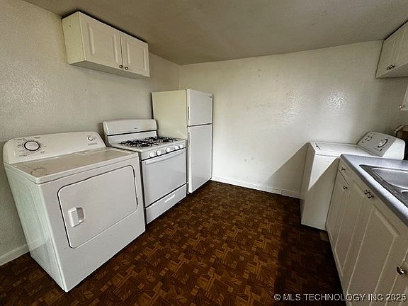 Welcome to this cozy 1 bedroom, 1 bathroom house located in Ada, OK. This charming downstairs apartment features a one bedroom with additional room that could be a bedroom or office/study. Bedroom has a large walk in closet. A gas wall heater to keep you warm during the colder months, a convenient washer/dryer included for your laundry needs, and a window air unit to keep you cool in the summer. The kitchen comes equipped with an oven/range and refrigerator, and water/sewer/trash services are included for your convenience. Don't miss out on the opportunity to make this house your new home!