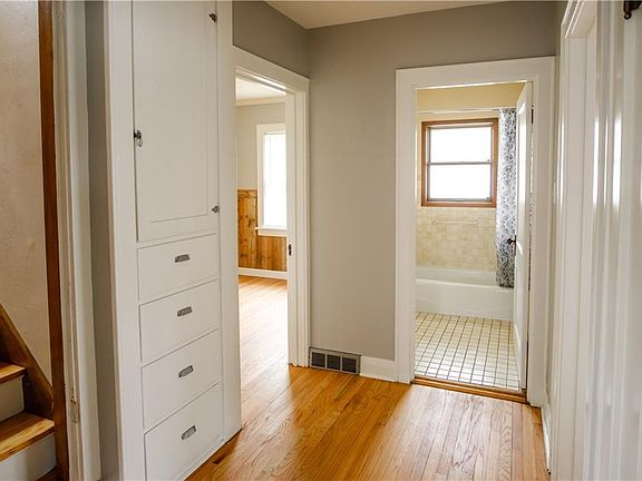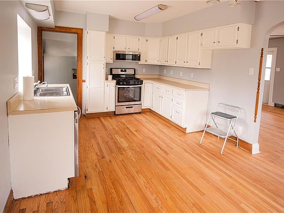 Fresh and Updated home on a large corner lot. Walk into the open living room with a nice fireplace, fresh paint and refinished hardwood floors that are beautiful. Open kitchen with white cupboards neutral countertops and stainless steel stove and microwave. Main level has 2 bedrooms. One of the bedrooms would be a great office or nursery. The upper level has 2 additional large bedrooms. Bedrooms have refinished hardwood floors. Home sits on a corner lot with extra parking. This is a must see home!