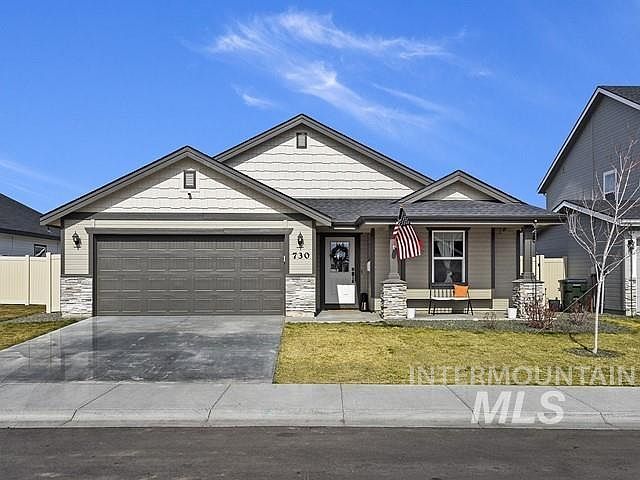 Welcome to this pristine move-in ready home built in 2021 in Greyhawk Subdivision. The owners made some tasteful upgrades to add character and make it feel like home! As you enter this split bedroom floor plan, you will find a living room made for entertaining with vaulted ceilings, plenty of natural light and a tile fireplace. The kitchen hosts a beadboard accent wall, two tone island, quartz countertops and stainless steel appliances. Additional upgrades include a large gazebo with pavers, dining room light fixture, kitchen cabinet hardware, window blinds, built in desk area with cabinets, and a high end security system.
