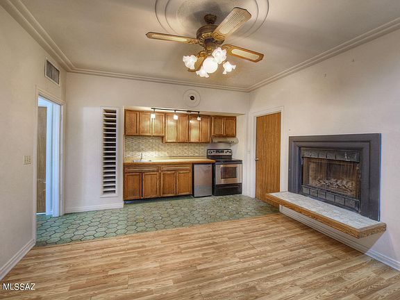 WORK FROM HOME? Need more space? This may be the one! SOLID CONCRETE BLOCK 1800sf under roof with plenty of space for a workshop/extra storage/full gym - or just use for office space and room for all of your toys. This one bedroom, one bathroom home with a Wood Burning Fireplace is centrally located and ZONED C-3 with endless possibilities. Welcome Home!