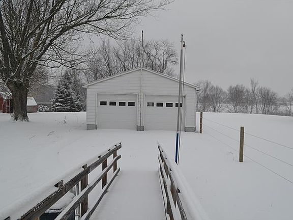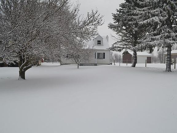 This darling home, with tons of potential! Under the carpet, are hardwood floors throughout.There is an eat-in kitchen with easy access to the dining room. Also featured is the nicely sized living room that is bright and sunny. The second floor has two bedrooms. The basement has high ceilings and could easily be finished. The half-acre is level and features a large double car garage with cabinets and work area. The back of the property is beautiful and connected to a field!