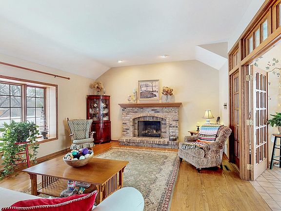 BEAUTIFUL CEDAR-BRICK HOME NESTLED ON ALMOST 1 ACRE PARK-LIKE SETTING WITH BRICK WALKWAYS, TIERED DECK & PATIOS... OUTDOOR LIVING AT ITS FINEST! Stunning Living Room showcases brick wood-burn fireplace w/ gas lit logs & view of curved oak staircase. French doors w/ side glass panes & transom windows lead you into Sunroom presenting 9'+ ceiling, hand painted walls & wet bar. Solid double doors open into Family Room boasting a majestic stone fireplace, crown molding, cubby w/ pass-through door from garage for fireplace logs & built-in bookshelves. Spacious eating area & Kitchen feature double ovens, pantry, planning desk, 4 lookout windows w/ panoramic backyard view & attractive lighting. Upper level Office loft displays built-in desk w/ wood top & bookshelves. 3rd Bedroom leads to a Nursery/Sitting Room. 7'x6' walk-in cedar closet is hidden in the walk-in attic storage area. Finished Basement is complete w/ 3rd fireplace, Rec Room, brick accent wall, Family Room & 4th Bathroom!