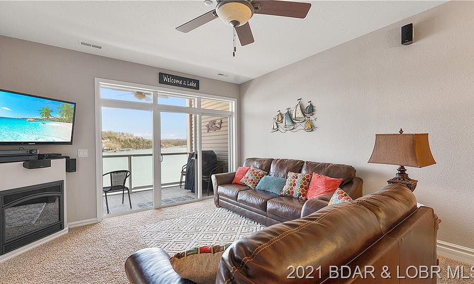 WELL APPOINTED, WALK-IN LEVEL, TURN-KEY LAKEFRONT CONDO This was the model unit for this complex and it offers 9' ceilings, large windows, fireplace, LED lighting, custom cabinetry and Travertine tile in the kitchen and baths. The kitchen has granite counters, Travertine tile backsplash, newer stainless appliances and soft close drawers and doors. All 3 bedrooms are suites with attached baths and offer almost new king beds. Take the elevator down to the dock and enjoy the TWO 12' x 36' boat slips next to each other. The condo association will let you partially fill one in if you would like a deck area on the dock and have PWCs or a smaller boat. The community pool is on the point with a panoramic view. Cash or In-house loan may be needed for purchase. Buyer may not be able to get a loan on this condo due to an ongoing lawsuit between the association and a condo owner regarding the adjoining property. Clear title will be provided. You can look at Case # 18CM-CC00175, Filed, 8-16-2018.