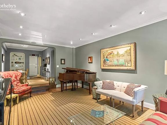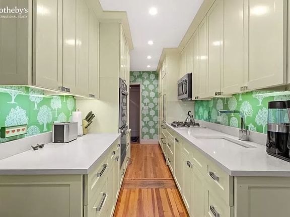 Welcome home to this move-in ready meticulously renovated two-bedroom, two-bathroom gem in one of Hudson Heights' most sought after Art Deco Co-Op buildings. Enter the apartment from the gracious arched foyer, with two custom closets, into a Dining Gallery. No detail was spared in the renovation of this home, reflected in details such as the sapphire tempered glass in the restored dining gallery hutch. Redoing the electric in the apartment has also given the opportunity to add energy efficient recessed lighting in the dining gallery and throughout the other living areas of the home, all on stylish dimmers. The adjacent reconfigured windowed eat-in kitchen has Caesarstone countertops, custom cabinetry, custom tempered glass backsplash, and appliances include: Subzero Refrigerator, Miele Dishwasher, Viking Range and GE Profile duel ovens. Not to be overlooked is a smart built-in desk. The elegant step down living room feels wide open with its beautifully refinished hardwood oak floors with mahogany inlay, high ceilings and western to the park facing windows. A fantastic space for a multitude of options, depending on your needs. The Bedrooms are separated for maximum privacy. The expansive primary bedroom has two dream custom closets, a ceiling fan with light fixture, plus several windows including a south and west facing corner that allows excellent light and air flow. The En-suite bath has many discerning features including an inviting glass tile in the shower, custom tempered glass door, Caesarstone sink countertop, sliding glass medicine cabinet and more. Between the two bedrooms and off a foyer from the living room, is a full second bathroom. Again, no detail overlooked from the Chevron pattern tile floor to the Onxy sink. The second bedroom is currently being used as a den and home office, and is spacious enough for both uses comfortably. It also has a ceiling fan light fixture and a custom closet. The building amenities include laundry room, courtyard garden (between 730 and 720), bicycle room, fitness room and storage cages (for a fee). Moments away from Fort Tryon Park which houses the Cloisters Museum, nearby playgrounds, additional neighborhood parks, restaurants and shops. The A train entrance is just a few feet away. Pets are welcome!