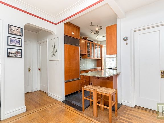 Charming TOP FLOOR Two Bedrooms/ One Bath apartment in one of Hudson Heights most sought after buildings. As soon as you step in to this home you will be surprised at the size of the rooms. A nice size foyer flows into the large Living room with a south facing window inundated with afternoon light. The open chef kitchen boasts top of the line appliances and wood cabinetry with plenty of counter space to prepare your family meals. The master bedroom is flooded with light and has a large corner window with views of open skies and tree tops. The second bedroom is smaller and works perfectly as a home office or guess bedroom too. This extraordinary home features 5 closets, 9-foot-high ceilings, loads of deco details and hardwood floors throughout. The amenities in the building include fitness club ($240/yr), storage facilities (WL), two laundry rooms, private courtyard garden, two bicycle rooms and a security guard(PT), as well as live in super and a handyman. There is ramp access for wheelchairs, strollers, and shopping carts. Pets are welcome. Situated only a few feet from majestic Fort Tryon Park with eight miles of pedestrian paths and the world famous Cloisters Museum (part of the Metropolitan Museum of Art). This terrific property is steps away to nearby playgrounds, parks, restaurants, shops, schools and parking garages. The A train is steps away to take you to Midtown in 20 minutes. Don't wait and come see it today!