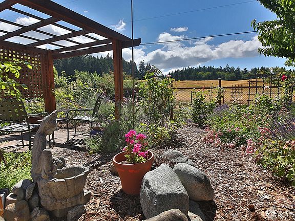 Surrounded by exquisite gardens and a pair of grand Firs, this delightful Langley home lives BIG (5 Bedrooms) while still maintaining its classic charm. Hardwood floors & a vaulted ceiling entry flow into an open, light-filled, & flexible floor plan that includes a main-level bedroom & a 3/4 bath. A spacious Primary Suite and a garage with workshop space too! Updates incl. ductless mini-splits, a remodeled bath with soaking tub & a propane fireplace. Enjoy expansive views of Fossek Farm & a peek-a-boo view of the Puget Sound & the Cascades from the upper level. A short stroll to Langley's quaint seaside village w/ restaurants, shops, theaters, beaches, and parks. Ask listing agents about the adjacent lot. Welcome to Langley, Welcome Home!