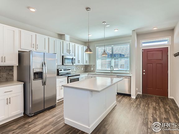 Welcome to this bright, impeccably cared for Townhome. This is truly a turn key, lock and leave home with everything you could ask for! This model is the upgraded option. A modern kitchen with solid surface countertops, tile backsplash, stainless steel appliances and abundance of cabinet space. Durable luxury vinyl plank floors flow throughout the main level. Upstairs has 3 bedrooms, 2 baths and a convenient laundry. Easy access to parks, trails, dining, shopping, recreation center, TPC Golf course in the desirable fast-growing Berthoud. Just off HWY 287, the neighborhood is convenient to both Loveland and Berthoud.