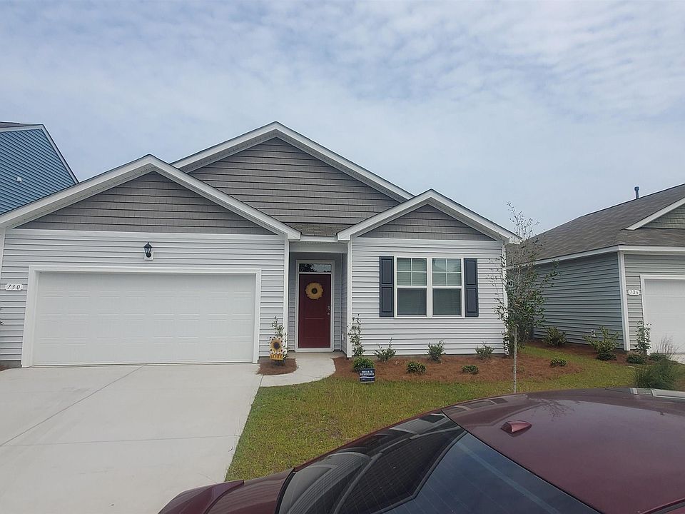 The Vistas at Sun Colony is a brand new community in Sun Colony. Convenient location near the new Highway 31 connector with easy access to all of the Grand Strand. This new community offers open concept single story and 2-story homes. Our Cali plan is a thoughtfully designed one level home with a beautiful, open concept living area that is perfect for entertaining. The kitchen features granite countertops, an oversized island, a walk-in pantry, and stainless Whirlpool appliances. The large owner's suite is tucked away at the back of the home, separated from the other bedrooms, with a walk-in closet and spacious en suite bath with a double vanity, 5' shower, and separate linen closet. Spacious covered rear porch overlooking the pond adds additional outdoor living space. This is America's Smart Home! Each of our homes comes with an industry leading smart home package that will allow you to control the thermostat, front door light and lock, and video doorbell from your smartphone or with voice commands to Alexa. QuickTie framing system also included. *Photos are of a similar Cali home. (Home and community information, including pricing, included features, terms, availability and amenities, are subject to change prior to sale at any time without notice or obligation. Square footages are approximate. Pictures, photographs, colors, features, and sizes are for illustration purposes only and will vary from the homes as built. Equal housing opportunity builder.)