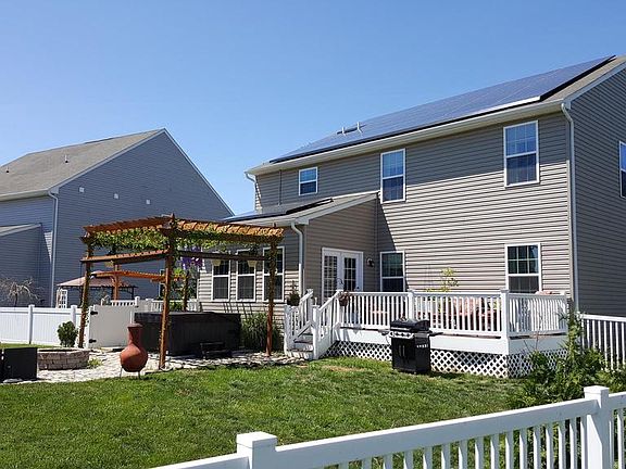 R-11307 Pride of ownership shows with this well upgraded home in Hazel Farms. Swimming pool, tennis courts and exercise facility are part of this desirable community. Spacious four bedroom three and one half bath two story. Hardwood floors and a custom tile foyer entrance leads you past the formal living and dining rooms to the open kitchen and family room. The kitchen features upgraded cabinets, stone counters, stainless appliances, and a large island. Enjoy the morning view of the fenced rear yard from the large breakfast room with custom bamboo ceiling treatment. Entertain on the deck or the picturesque paver patio with trellis. Master bedroom has two walk in closets and full master bath suite with natural stone. Three additional bedrooms and a laundry room complete the 2nd floor. Finished basement with office, second family room, media and playroom. A full bath and outside entrance complete the basement. Lawn irrigation is also included. This home is a must see. This home is equipped with solar panels. The Buyer may take over responsibility for the panels or negotiate to have Seller remove them.