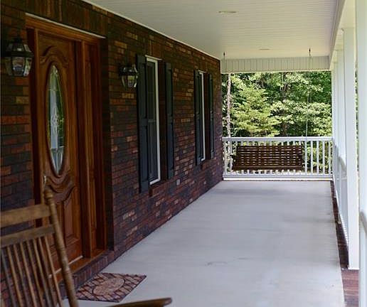 Beautiful brick ranch style home with long front and back porches. Spacious living room with fireplace and great kitchen with large pantry cabinet. Separate breakfast area and dining room. His and Her walk in closets and jetted tub in the large master suite. Two more bedrooms & office. Easily finished basement. Custom built cabinets. Solid wood molding. Insulated doors and windows. 5 acres of property has a 960 SqFt. building with garage door - suitable for storage, big boy and girl toys, or a workshop.