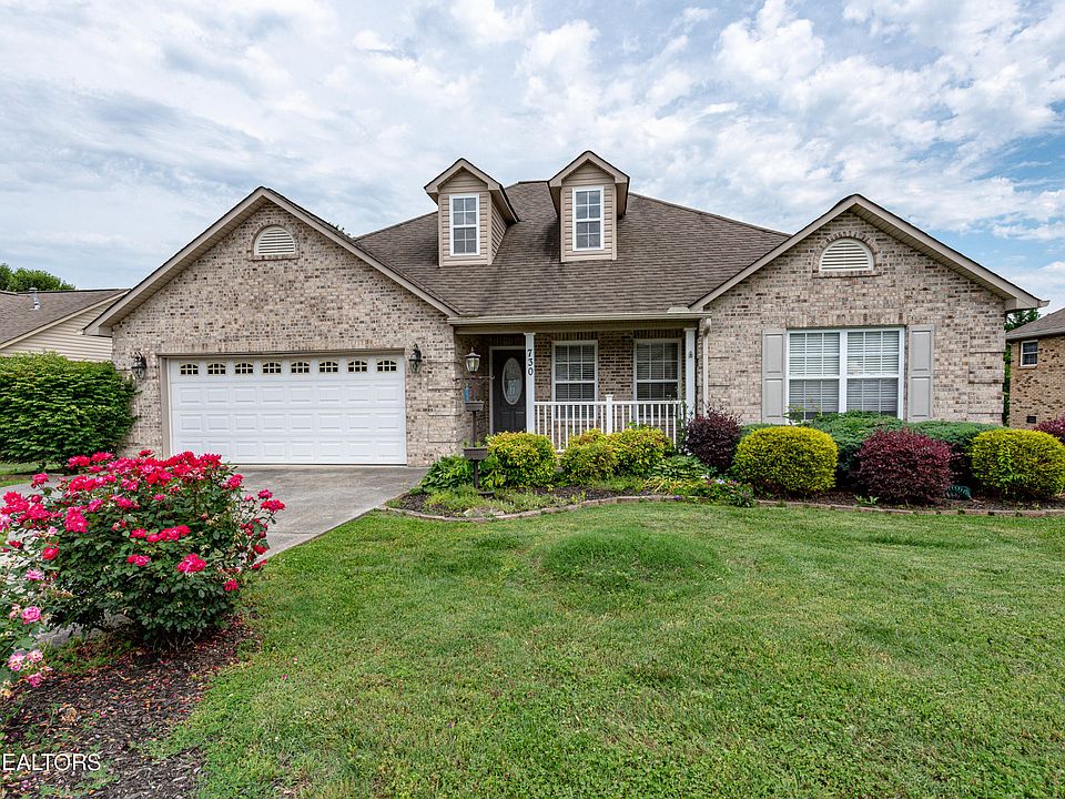 Lovely one level ranch split bedroom floorplan located within the city limits of Maryville. This all brick home features hardwood and laminate floors throughout the main living area and tile in the wet areas. Featuring a spacious master with en suite, over sized closet, and adjacent laundry room. Great room with vaulted ceiling, gas log fireplace and formal dining area. Kitchen offers an island, stainless appliances a breakfast nook for additional seating. The split guest bedrooms offer privacy with their own full bath. The back of the home features a nice sized covered porch and a slight view of the Smoky Mountains. This home will not last long with its close proximity to shopping, dining, hospital, mountains and so much more.