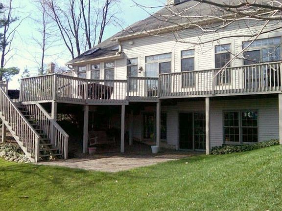 An incredible lakefront property that truly has it all! This masterpiece features cathedral ceilings throughout and offers the perfect open and airy floor plan. Enter through the grand foyer and you'll see directly through the great room which offers beautiful hardwood floors and a wall of windows that provides amazing panoramic views of the lake. The cook's gourmet kitchen is entirely open to the great room and allows for a view of the beautiful floor-to-ceiling stone fireplace. The luxury master suite boasts skylights, a whirlpool bath with a large shower, and a huge walk-in closet. On the opposite wing you'll find two generous bedrooms and another full bath. The finished lower level offers a guest bedroom, a bathroom, and a large rec room which walks out to a lovely stone patio and the lake. The square footage listed includes 3,204 sq ft on the main floor and an additional 1300 sq ft on the lower level.
