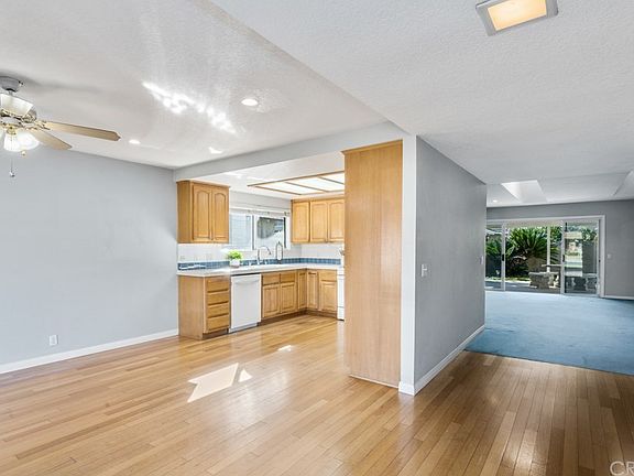 Lovely large 3 Bed + Den home located on a serene cul-de-sac. This home is spacious with a large kitchen and family room/dining room area. Wood floors in entry, family room and kitchen. Cheerful kitchen with loads of cabinetry and ample prep space. Large sunny living room with recessed lighting, built-in for books, entertainment system, or anything you'd like. Living room also has skylights and cozy fireplace. Access from the living room through sliding glass doors to entertainers delight back yard complete with refreshing swimming pool. Wide hallway with large linen storage. Separate laundry room area adjacent to a 3/4 bath with access to back yard, perfect for pool bath! Master bedroom includes mirrored wardrobe, ceiling fan with attached master bath. All bedrooms include ceiling fans. Large backyard includes a covered patio and pool. Award winning Placentia/Yorba Linda schools! Convenient to shopping and freeway access,