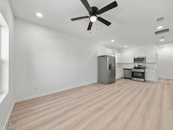 Brand New Construction in Panama City for Under $200K! Enjoy modern living in this newly built 2-bedroom, 1.5-bathroom home located in a convenient Panama City neighborhood. With a clean, contemporary design and open-concept layout, this home is perfect for first-time buyers or anyone seeking affordable, low-maintenance living. Step inside to light-colored flooring, recessed lighting, and a bright, welcoming space. The kitchen features white cabinetry, sleek countertops, stainless steel appliances, and room to add a mobile island—perfect for casual meals and extra storage. Both bedrooms are comfortably sized and filled with natural light, offering cozy retreats at the end of the day. The bathrooms showcase stylish modern finishes that elevate the space. Outside, enjoy the Florida lifestyle in your fully fenced backyard, ideal for cook outs, relaxing or gardening. The home also features a charming porch with a patio fan, a durable metal roof, and a concrete driveway for added convenience. Don't miss out on this rare opportunity! Enjoy the Florida lifestyle in the spacious and fully fenced backyard, providing privacy and a secure area for outdoor activities, gardening, or simply relaxing. The property also features a charming screened porch, perfect for enjoying the fresh air and entertaining guests. The front of the home offers excellent curb appeal, metal roof, and a concrete driveway.