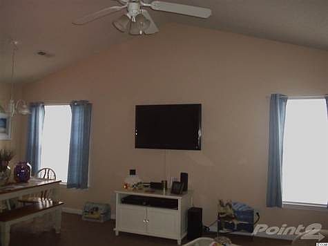 MALLARD LANDING VILLAGE is a wonderful community 1.3 miles to the Atlantic and the Surfside Pier. This home is bright and has an open floor plan. The large living area has vaulted ceilings, ceiling fan and has a sliding door to a new large screen porch which has indoor/outdoor carpeting and energy efficient sun shades.There is an extended patio for grilling. A bright kitchen with a nice eating area, plenty of cabinets and wood look laminate flooring in the kitchen and the entryway. Master bedroom is large with a vaulted ceiling, walk in closet and a master bath. Second bedroom also has a walk in closet. Home comes with the washer and dryer included. This home has other features including a garage sliding screen door, side garage door and plenty of storage over the garage. Also security light with a timer, home warranty and a termite bond. The community has sidewalks to enjoy morning walks, low HOA fees and is only a golf cart ride to the beach.