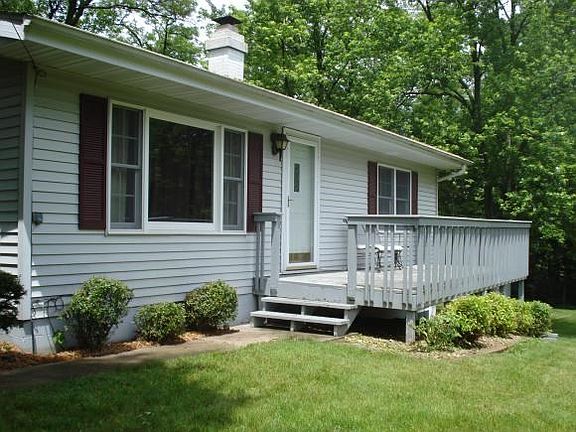 Sharp Mt. Zion Ranch sitting on .75 acre lot. Feels like being in your own private park! Walk out finished basement with 4th bedroom, family room and bathroom. Gas stone fireplace in Living room and main hall bathroom has ceramic tile heated floor. Located on private dead end street only blocks from high school. Huge 2 1/2 car detached garage. Shed stays in back yard. All appliances stay! Ready for a new family to move into before school starts! Home has an American Home Shield Warranty!